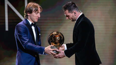 Leo, recogió el trofeo en la gala de París de la mano de Luka Modric, que acudió a la invitación de France Football en un gesto que le honra, puesto que esta vez no estaba ni entre los finalistas.